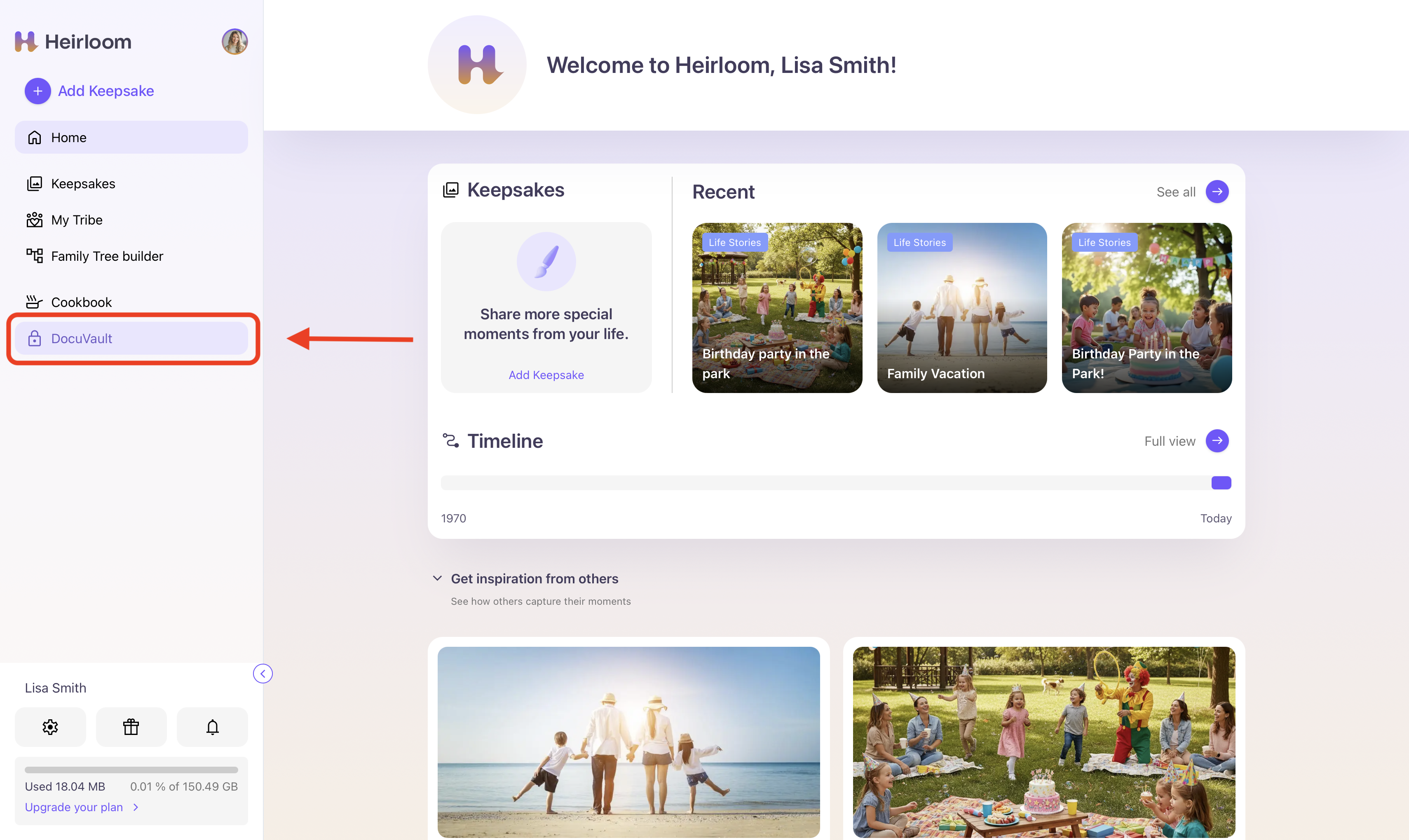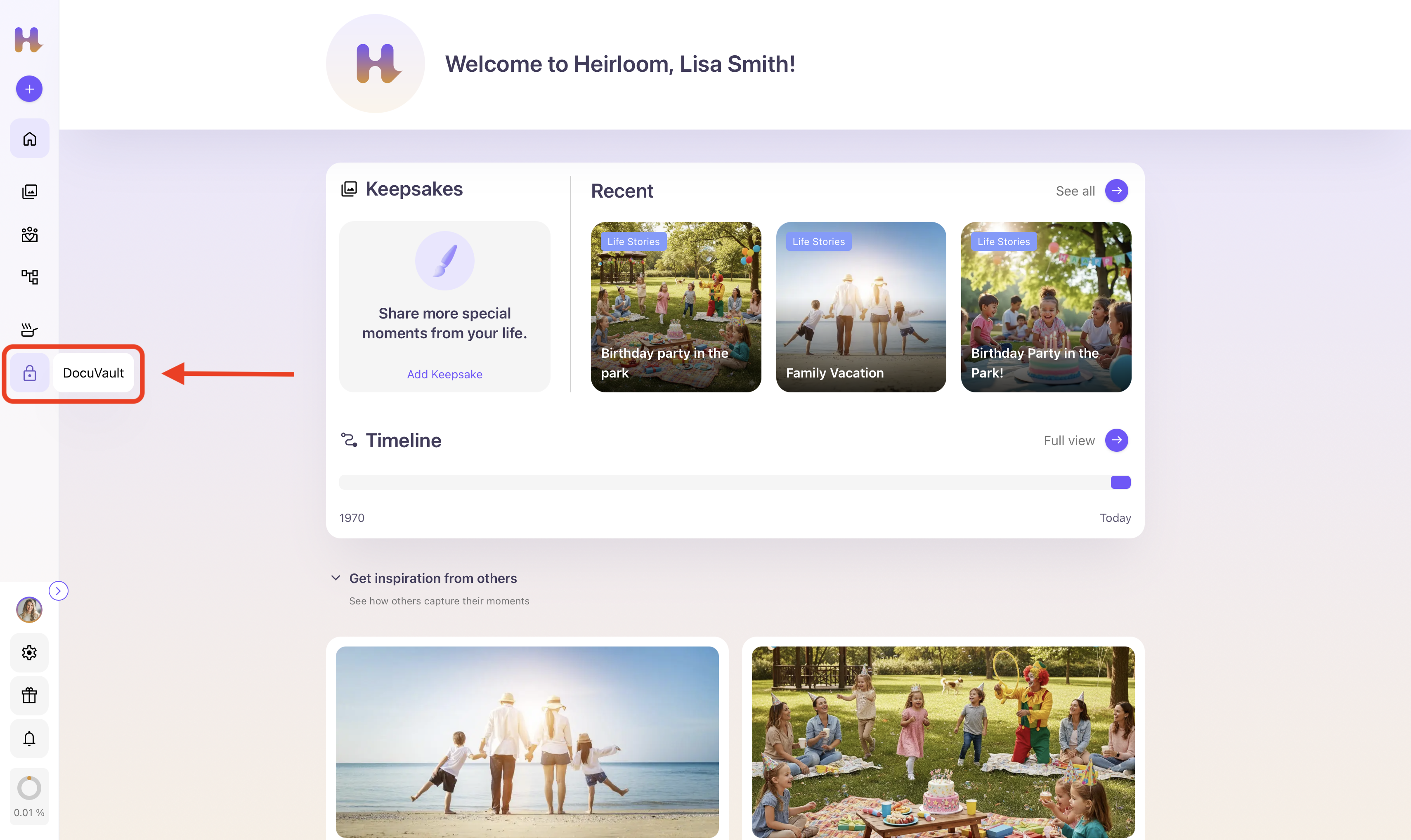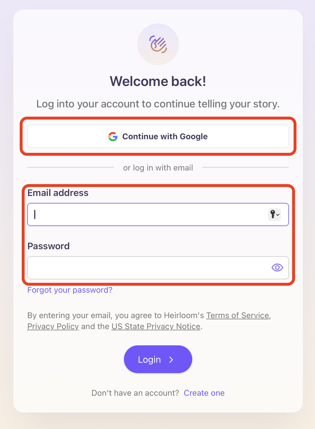 If you originally signed up for Heirloom with an email and a password, you will be asked to identify yourself with your account password in order to access your DocuVault. This password will be your unique key to your vault every time you wish to access it.