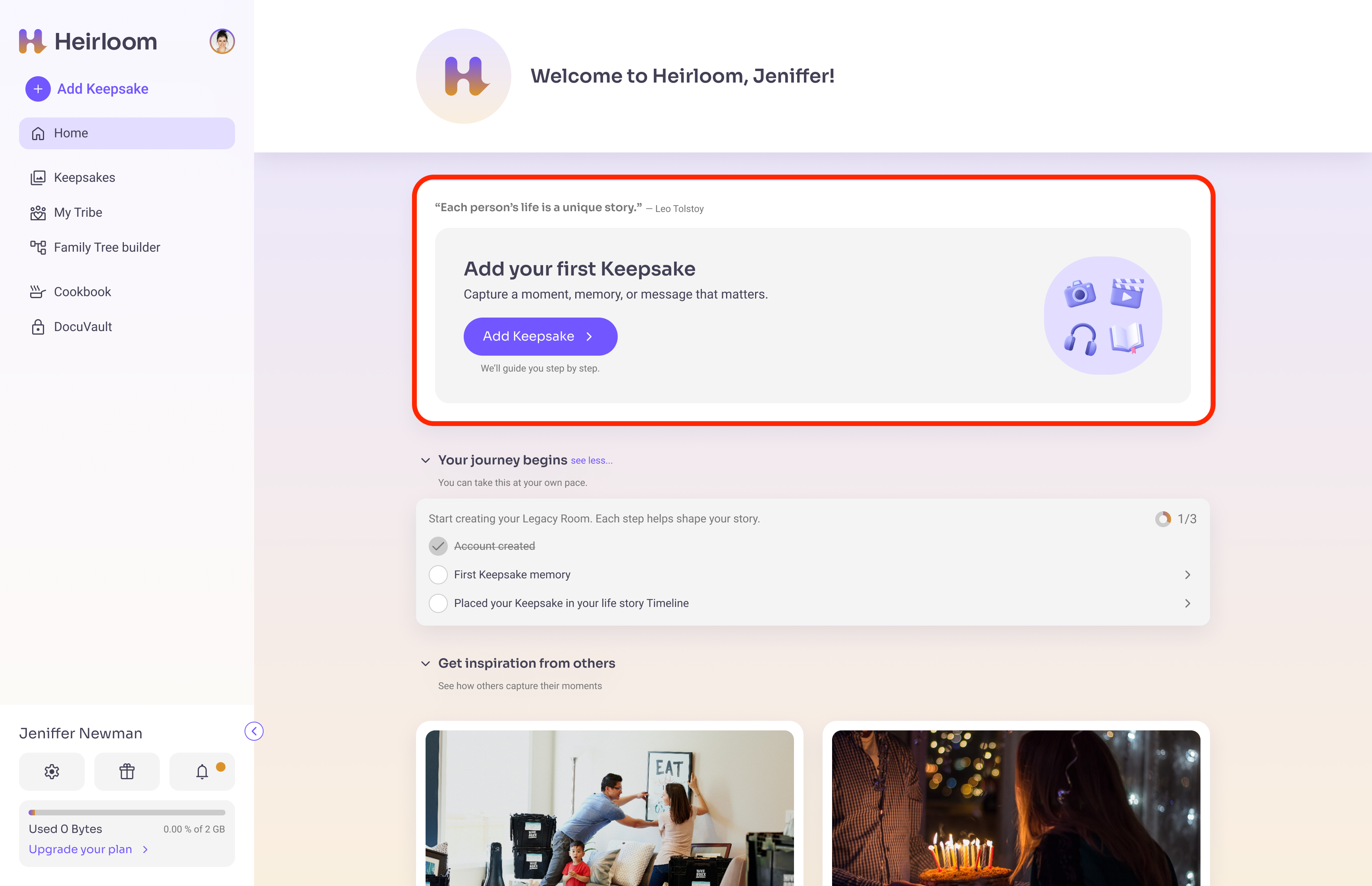 NEXT, learn how to view and organize your Keepsake on your Life Timeline.